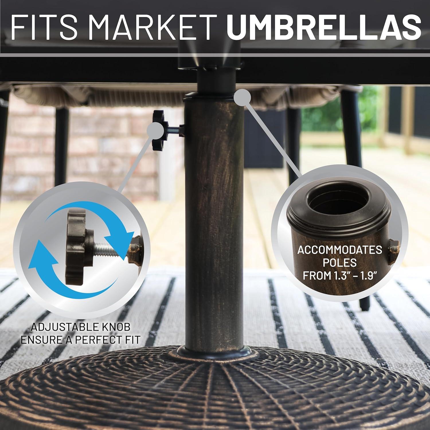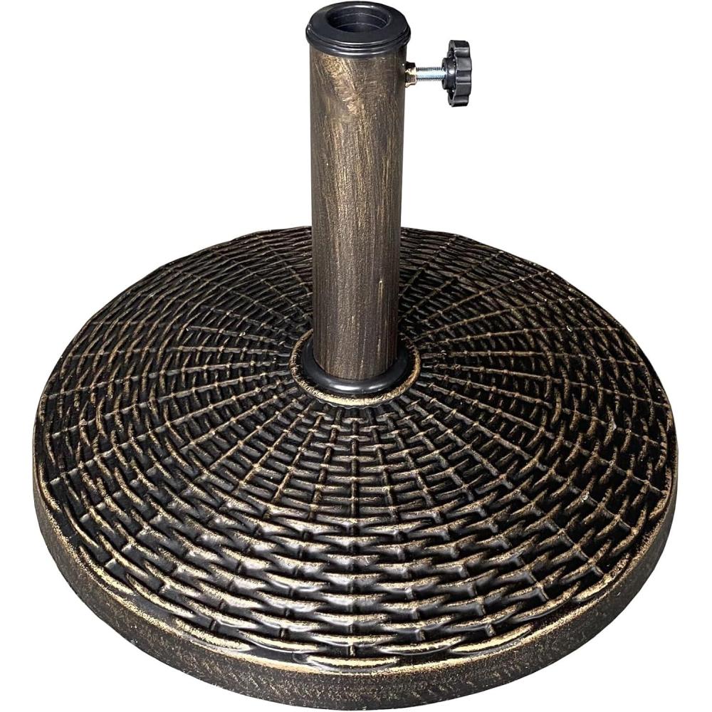 US Weight - Cast Stone Patio Umbrella Base, 22lb Wicker Pattern - Durable, Weather-Resistant Patio Umbrella Base - Made in the USA - Bronze
