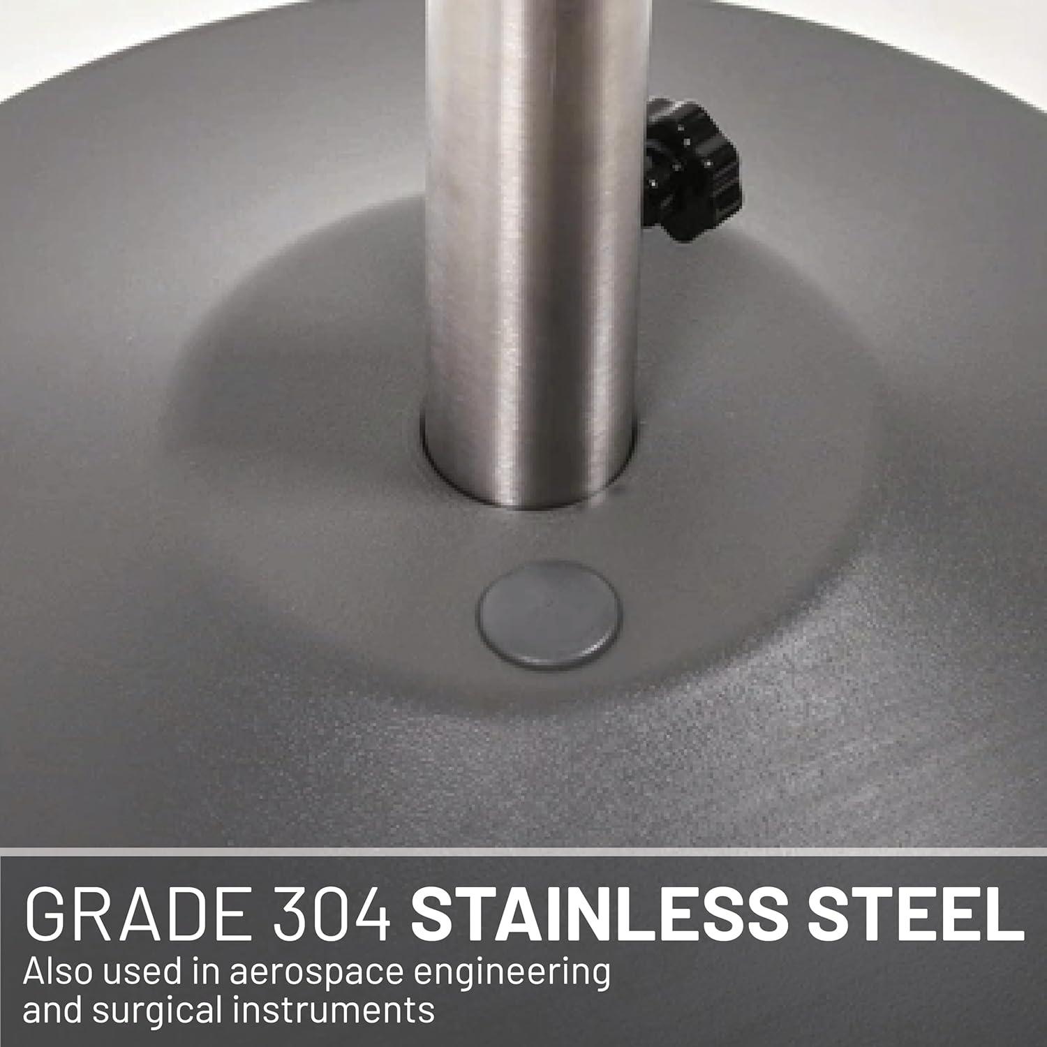High-quality free standing umbrella base with grade 304 stainless steel stem and hardware