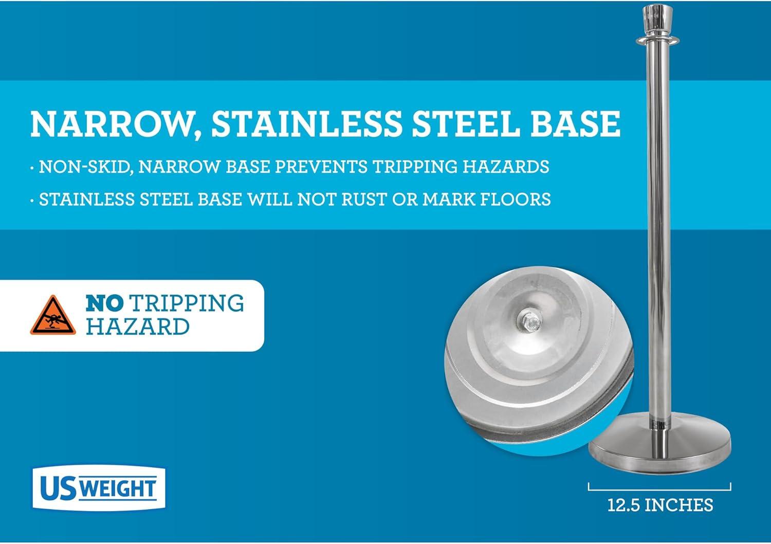 Narrow by design base prevents tripping hazards – stainless steel (no rust) bottom with 360 degree non-skid ring