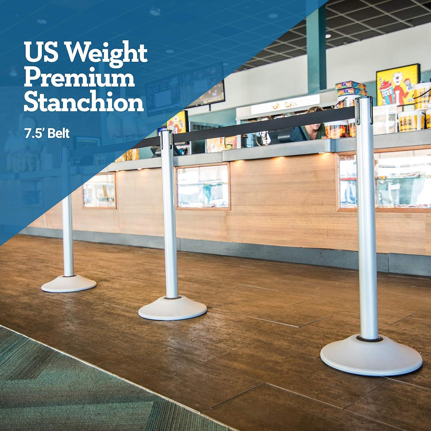 US Weight Premium Silver Steel Stanchion with 7.5-Foot Retractable Belt(Caution)