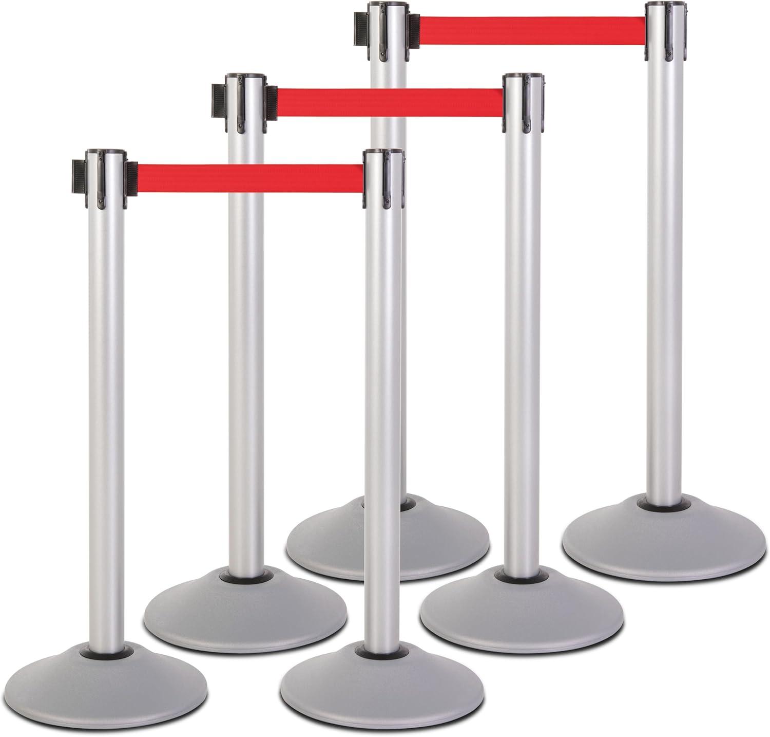 US Weight Premium Silver Steel Stanchion with 7.5-Foot Retractable Belt(Red)