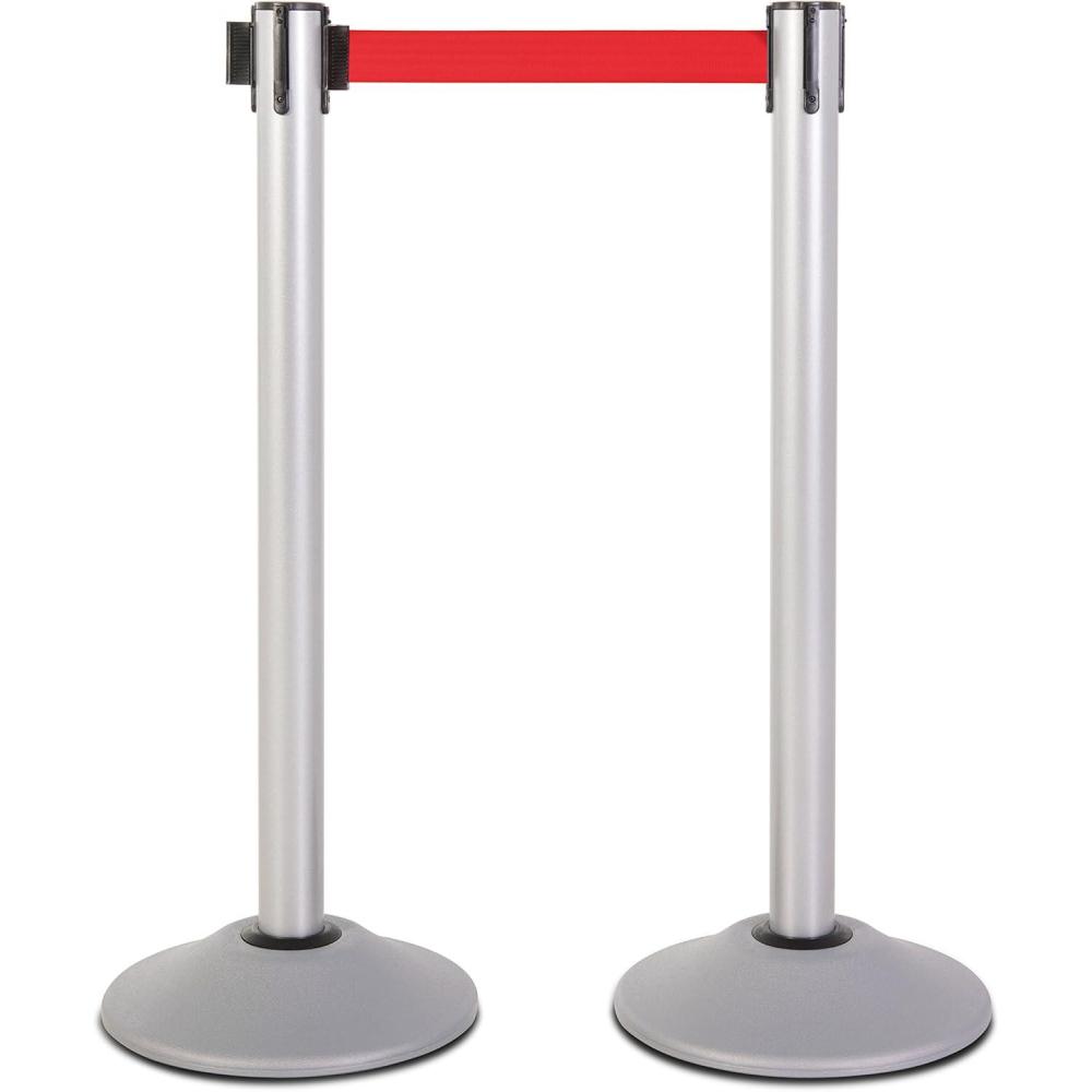 imageUS Weight Premium Silver Steel Stanchion with 75Foot Retractable BeltRed