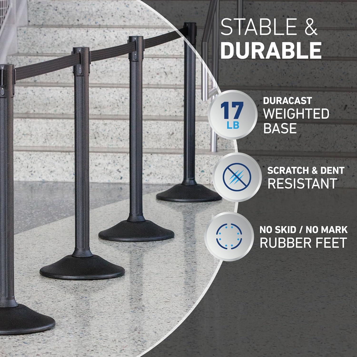 6.5' Retractable Barrier Belt: Each stanchion post comes equipped with a 6.5-foot black stanchion belt; The retractable belt allows for extra versatile use, including controlling crowds and managing lines at various venues